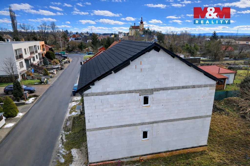 Stavba z kvalitního systému KM Beta je ve fázi hrubé stavby a má osazenou střechu s pálenou taškou. Dům s dispozicí 6+kk, dvěma koupelnami a technickou místností nabízí komfortní bydlení pro větší rodinu. Poloha na hranici pozemku zajišťuje dostatek prostoru pro zahradu, volný čas a rodinné aktivity. Na pozemku jsou menší stavba, kůlna k rekonstrukci či demolici.