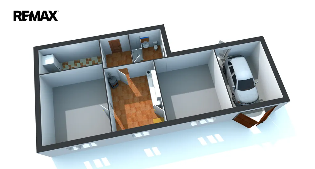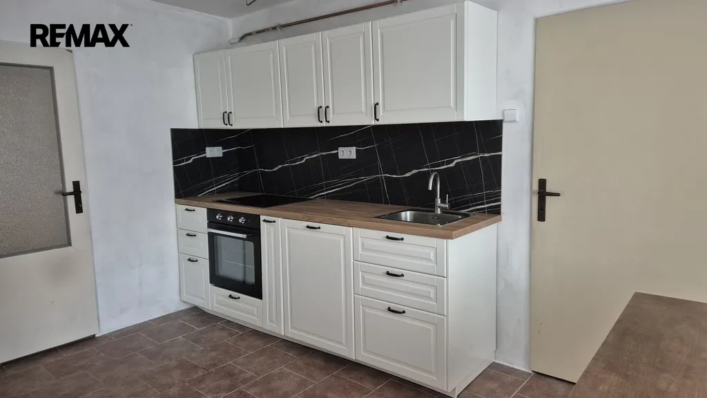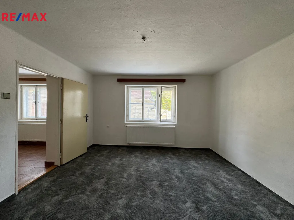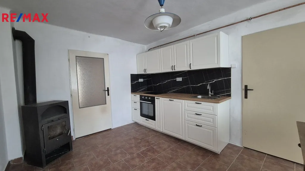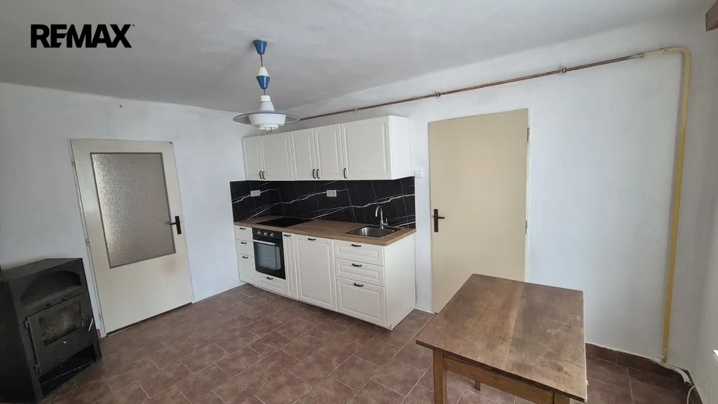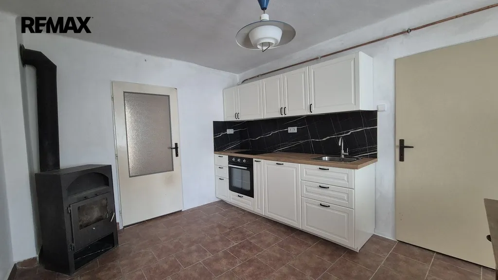Vstup do domu je zajištěn vraty - vjezdem, který můžete využít jako garáž nebo samostatnou brankou a přes dvorek vstupními dveřmi do chodby. Z chodby je vstup do koupelny se sprchovým koutem a WC nebo do kuchyně a komory/spíže. V kuchyni jsou novější krbová kamna a nová kuchyňská linka s indukční varnou deskou a elektrickou troubou. Kuchyně je dále průchozí do dvou samostatných pokojů. Vytápění a ohřev vody jsou zajištěny pomocí kombinovaného plynového kotle. Na dvorku je pergola s posezením a kůlnou.