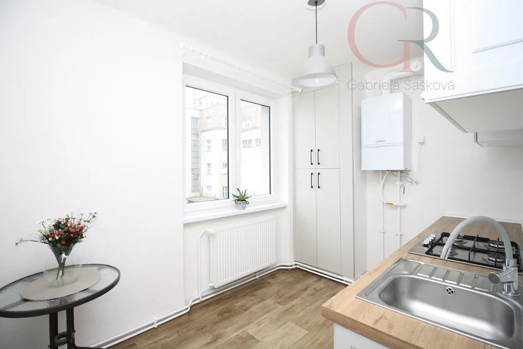 Vytápění bytu i ohřev vody je zajištěn plynovým kotlem.