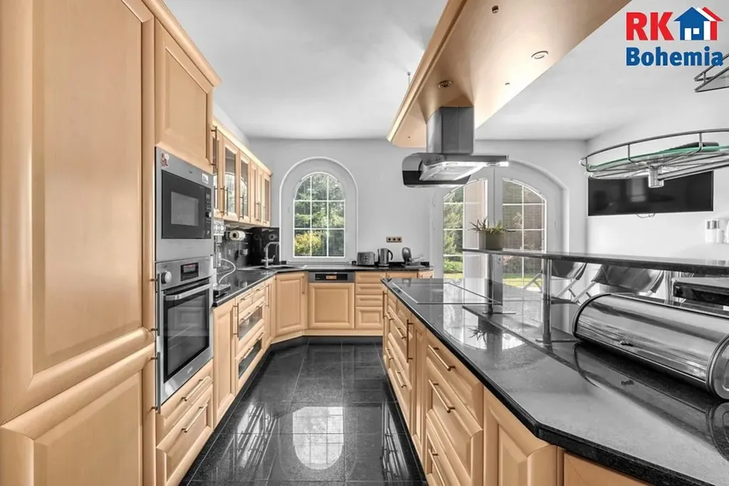 Výhodou elektrocentrálu na benzin s automat.startem, která napájí veškeré osvětlení, zásuvky, vjezdovou bránu a garážová vrata. V kuchyni je GRIL na dřevo a dřevěné uhlí + pec na pizzu na dřevo a v obývacím pokoji velký krb na dřevo a to vše funguje bez elektřiny.