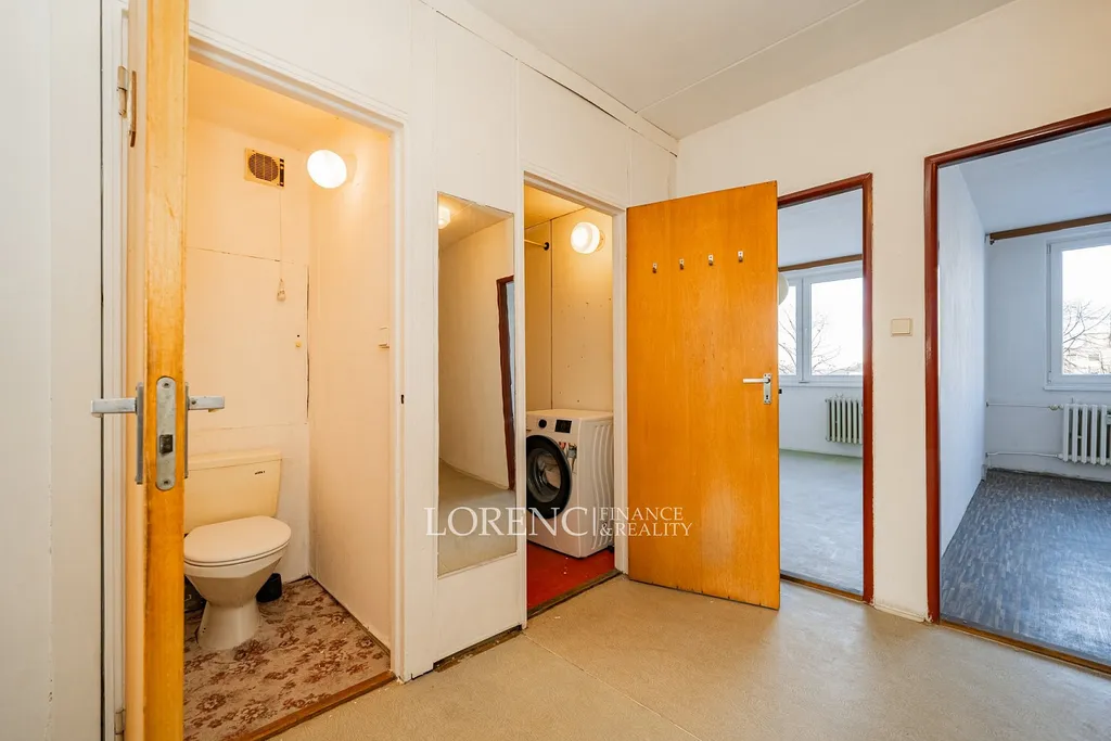 Praktickým benefitem je také komora u vstupu do bytu (3,6 m²) a prostorná předsíň s vestavěnou skříní. K bytu náleží také sklepní kóje.