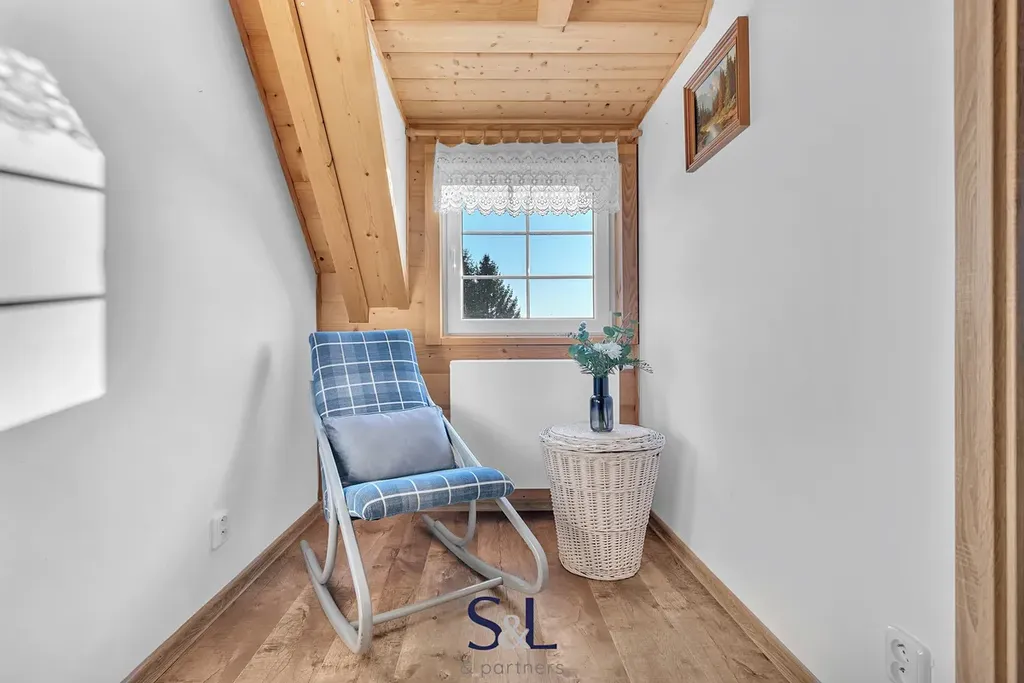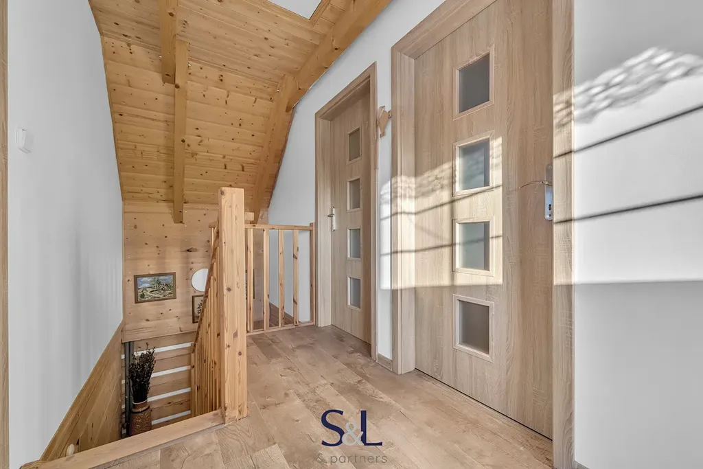 V patře jsou tři podkrovní pokoje. Nad obytnou částí je k dispozici ještě půda s pevnou podlahou, vhodná jako úložný prostor nebo k dalšímu využití.