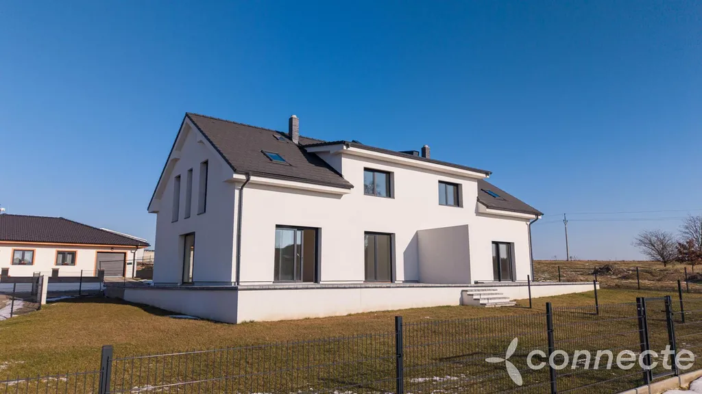 Nabízíme k prodeji moderní novostavbu rodinného domu o dispozici 5+kk, situovanou v klidné slepé ulici obce Klenovice u Soběslavi. Dům je součástí dvojdomu a byl stavěn pro vlastní rodinu s důrazem na kvalitní zpracování, promyšlený projekt a maximální soukromí. Lokalita nabízí klid venkova v kombinaci s výbornou dostupností rychlé napojení na dálnici D3, vlakové i autobusové spojení ve směru PrahaTáborČeské Budějovice a kompletní občanskou vybavenost v nedaleké Soběslavi.