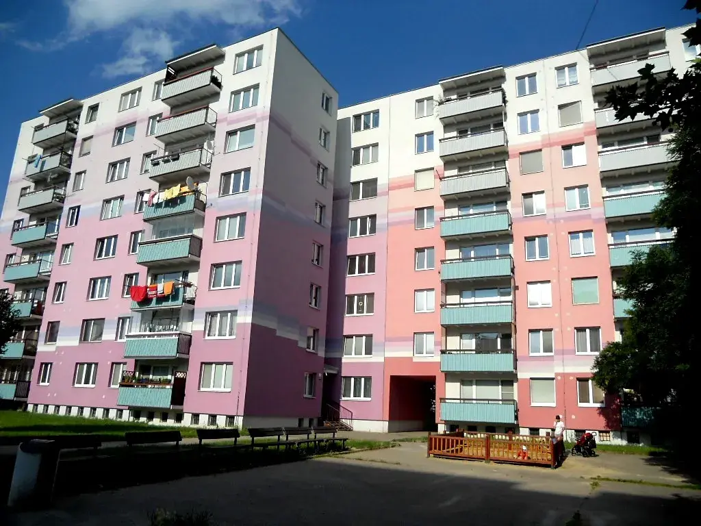 Byt je v 1.poschodí/7 panelového domu s výtahem na ul. Strnadova na začátku Líšně.