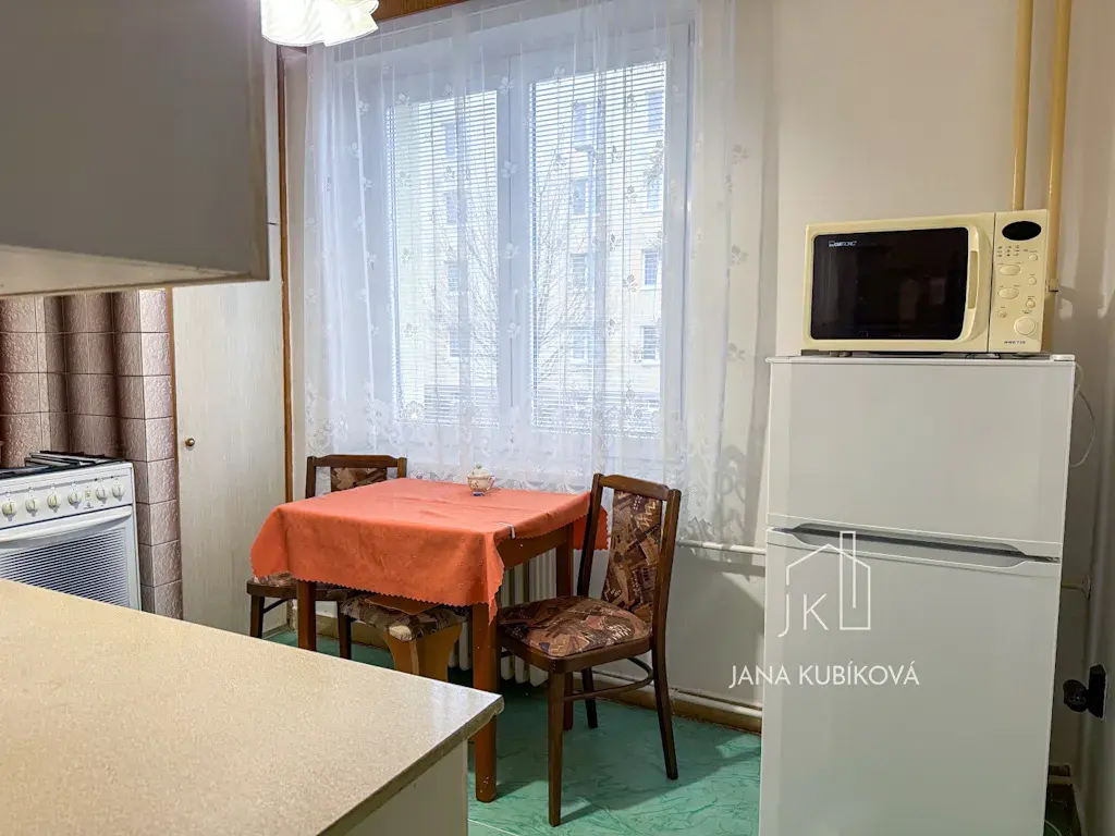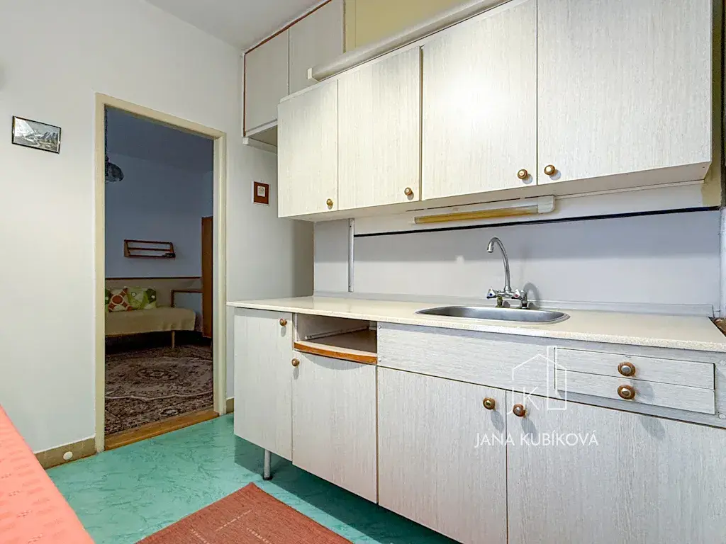 Z chodby je dále přístupná kuchyně s jídelním koutem, která plynule navazuje na obytný prostor. Současně je z chodby vstup do obývacího pokoje se vstupem na balkon a do dalšího samostatného pokoje, vhodného jako ložnice či dětský pokoj.