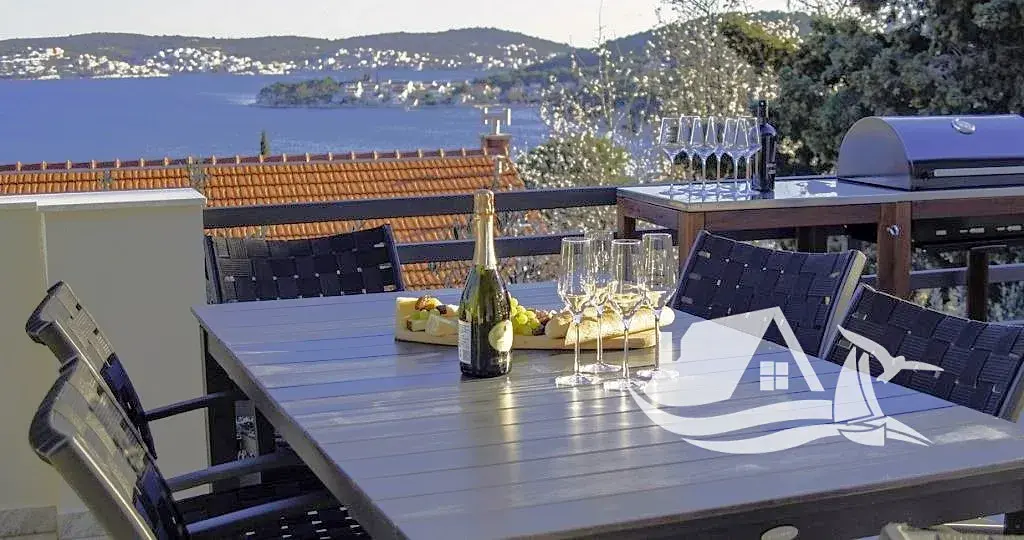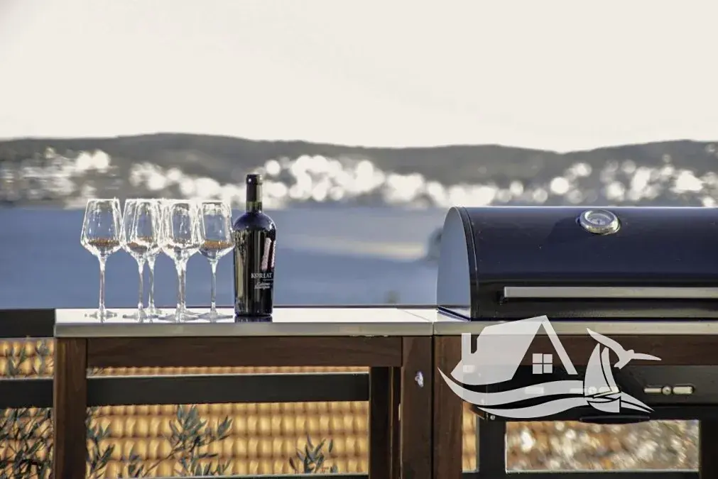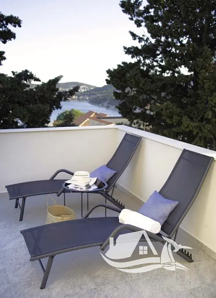 Z obývacího pokoje je přímý vstup na mimořádně velkou terasu s výhledem na Rogoznický záliv. Terasa je rozdělena na krytou část o velikosti 12 m² a otevřenou část o ploše 36 m², což umožňuje flexibilní využití během celého dne. Celková užitná plocha apartmánu tak dosahuje 74 m² a vytváří ideální prostor pro relax, stolování i večerní posezení s výhledem na moře.