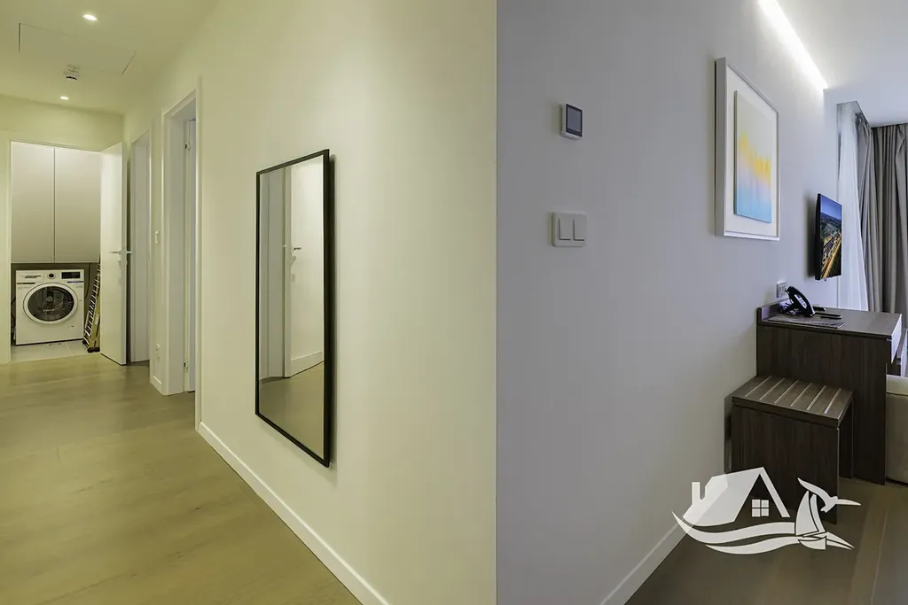 Celková plocha jednotky činí 95,5 m², k níž náleží prostorná terasa o velikosti 12,20 m² s úchvatným výhledem bazén. Interiér je kompletně vybaven moderním, kvalitním nábytkem, který podtrhuje styl i komfort bydlení.