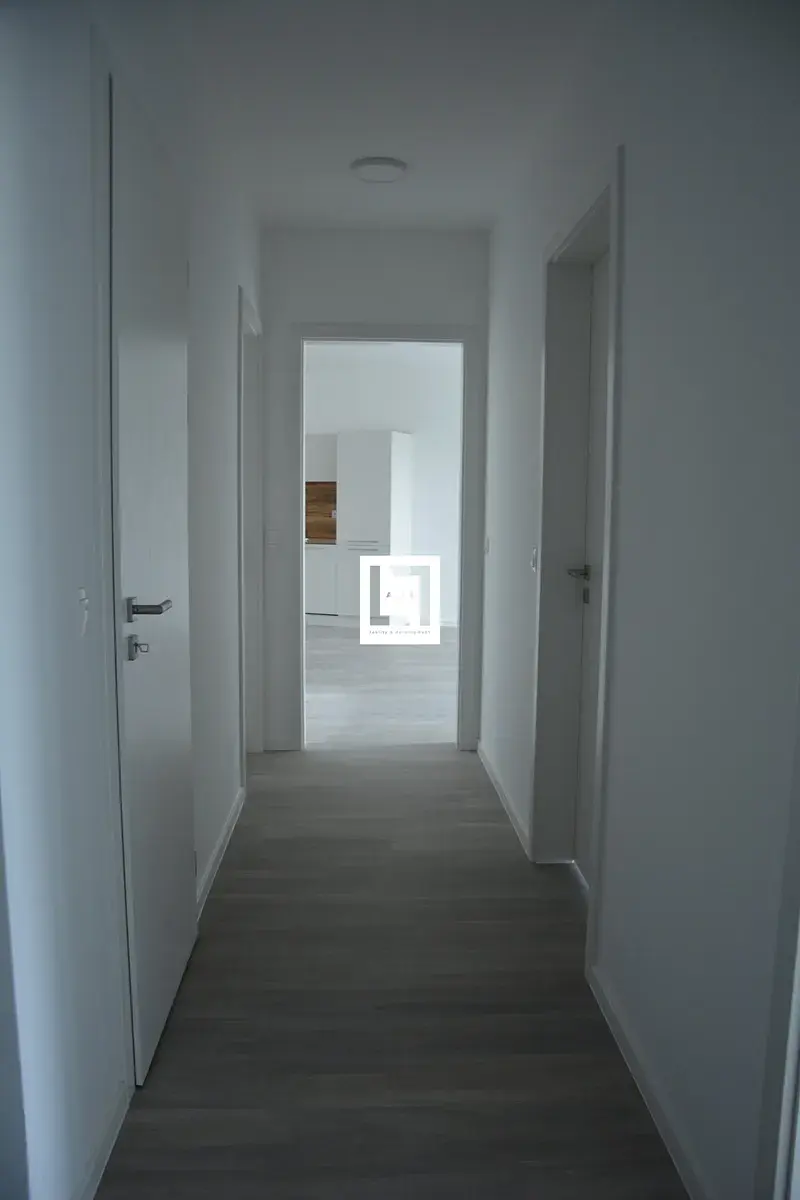 terasa a 25,94 m2 předzahrádka se nachází v přízemí domu s pěkným výhledem do okolí. Celý byt je nádherně prosluněný a působí vzdušně. Vedle vstupních dveří je vestavěný odkládací prostor umístěn za posuvnými dveřmi. Z chodby se vchází do dvou samostatných pokojů, komory s regálovým systémem, samostatného WC, koupelny a do obývacího pokoje s kuchyňskou linkou. Na míru řešená kuchyňská linka je