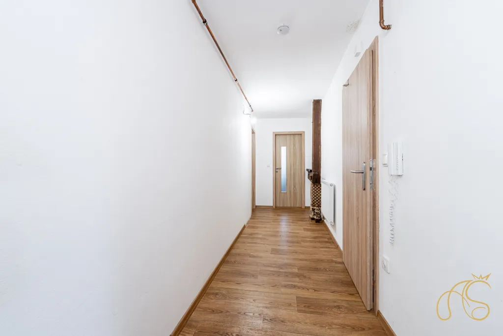 Nabízíme k prodeji zrekonstruovaný byt o velikosti 3+kk s celkovou výměrou 158 m². Jedná se o podkrovní byt v osobním vlastnictví nacházející se ve II. nadzemním podlaží domu. Je vytápěný vlastním plynovým kotlem. Součástí bytu je část půdy o výměře 41 m² s vlastním vstupem z kuchyně - využívaná jako sklad. V současné době je bytová jednotka obývána nájemníky s platnou smlouvou.