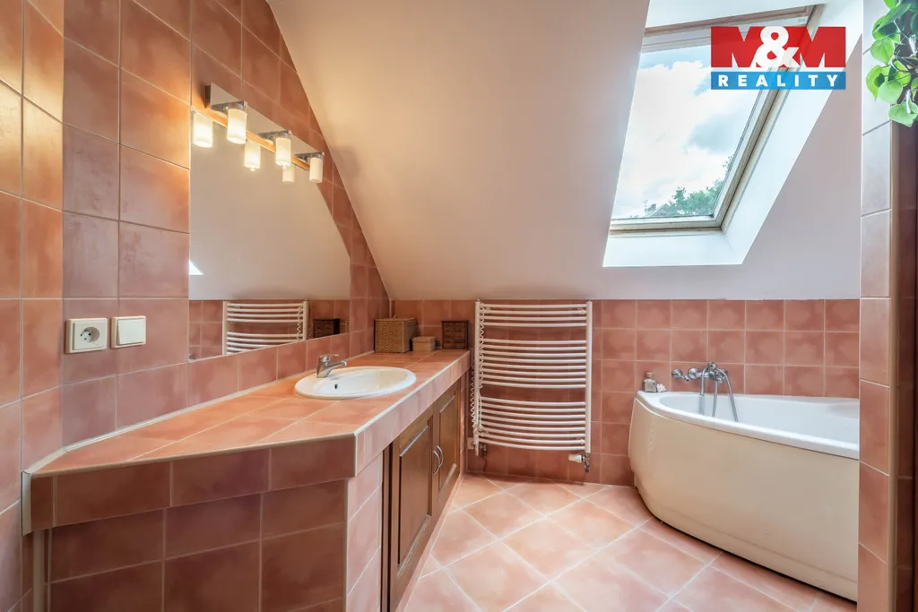 Solidní rodinný dům z r. 2005 o dispozici 4+1. Kromě bydlení nabídne i 2 zařízené apartmány na pronájem s odděleným vstupem, s vlastními sociálními zařízeními a kuchyní. Dům se rozkládá ve 2 NP a 1 PP s technickým zázemím - dílna, kolárna, sklad, garáž, kotelna s prádelnou, šatna. Srdcem domu je obývací pokoj s balkonem (28,1 m²) ve vysokém otevřeném prostoru, procházející přes 2 podlaží, který zaujme především velkými atypickými okny. Na obývací pokoj navazuje vkusně zařízená kuchyně s jídelnou se vstupem na terasu. Dále v obytné části najdeme pracovnu se žehlírnou, 2 ložnice, přičemž hlavní ložnice disponuje šatnou průchozí do prostorné koupelny s vanou a sprchovým koutem. Stavba je vybavena pokročilými technologiemi pro úsporu energií. Vytápění je zajištěno tepelným čerpadlem s možností dotápění kondenzačním plynovým kotlem, na střeše jsou osazeny FTV solární panely. V celém domě je rozveden centrální vysavač. Na zahradě se nachází bazén s vl. tepelným čerpadlem a pískovou filtrací.