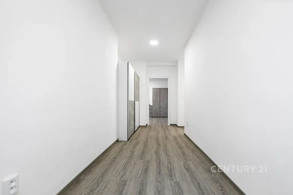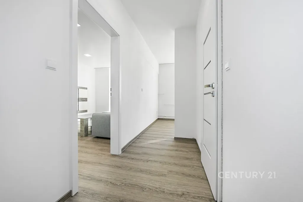 Byt se nachází v 1. patře cihlového domu a nabízí velmi příjemné bydlení. Dispozice zahrnuje dva neprůchozí pokoje. Obývací pokoj je vybaven sedací soupravou, konferenčním stolkem, televizní stěnou a je z něj přímý vstup na balkon. V ložnici i na chodbě je k dispozici dostatek úložných prostor v podobě skříněk a šatních skříní.