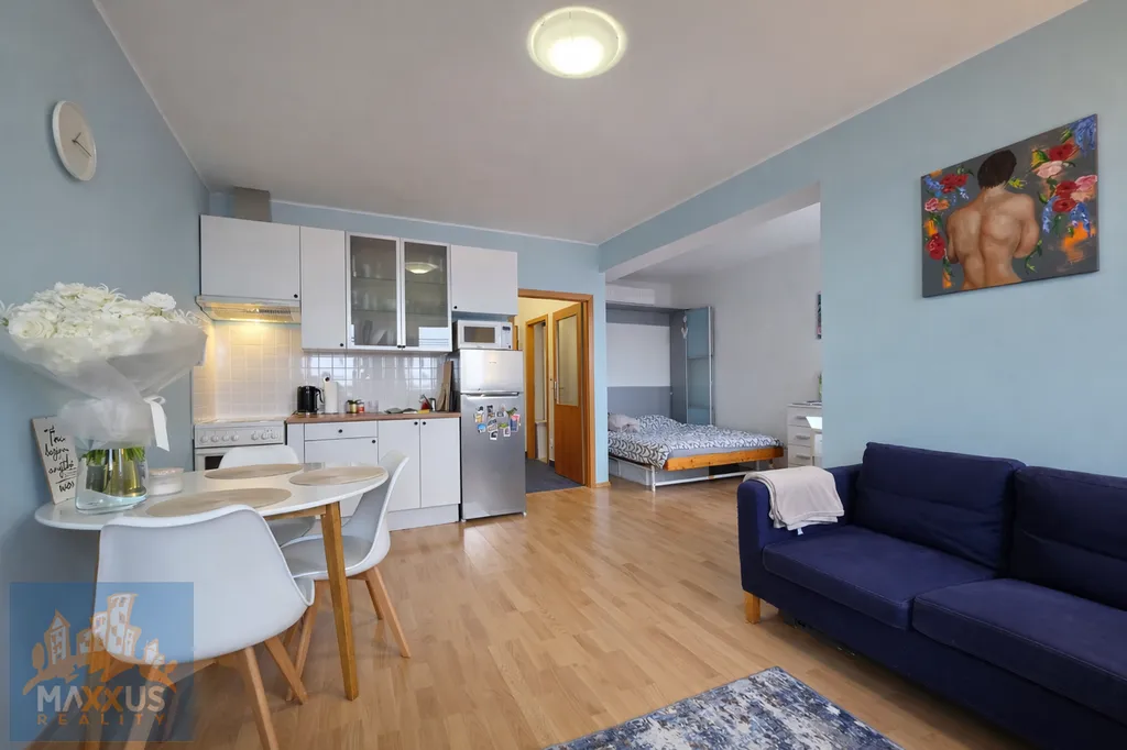 Od 1.4.2026 k dlouhodobému pronájmu nabízíme velmi příjemný a prakticky dispozičně řešený byt 1+kk o ploše 36,5 m², umístěný ve 3. nadzemním podlaží cihlového domu s výtahem. Byt je jižně orientovaný s krásným ničím nerušeným výhledem. Dispozice bytu zahrnuje vstupní chodbu, prostornou komoru (šatnu), koupelnu s vanou a toaletou (pračka součástí vybavení) a obývací pokoj s kuchyňskou linkou vybavenou lednicí s mrazákem, troubou, elektrickou varnou deskou a digestoří, na který navazuje spací zóna s vyklápěcí postelí. Vytápění bytu je ústřední, podlahy jsou plovoucí a dlažba. K bytu je možné pronajmout garážové parkovací stání za 1.500 Kč/měsíc. V okolí domu se nachází školy, školky i dětská hřiště a autobusová zastávka je v docházkové vzdálenosti s dojezdem přibližně 5 minut na metro Budějovická. Nájemné činí 16.600 Kč/měsíc, služby 3.800 Kč/měsíc včetně internetu, vratná kauce 20.400 Kč. Byt je určen maximálně pro 2 osoby, pouze pro nekuřáky, majitel preferuje nájemce bez domácích mazlíčků. Pro více informací a sjednání osobní prohlídky kontaktujte makléře.