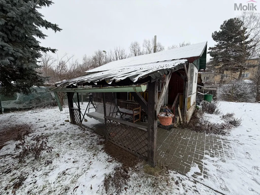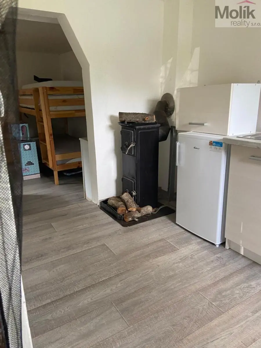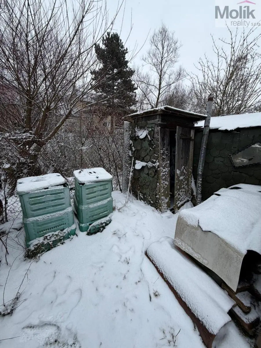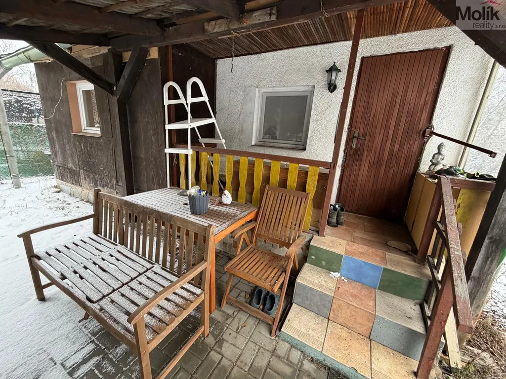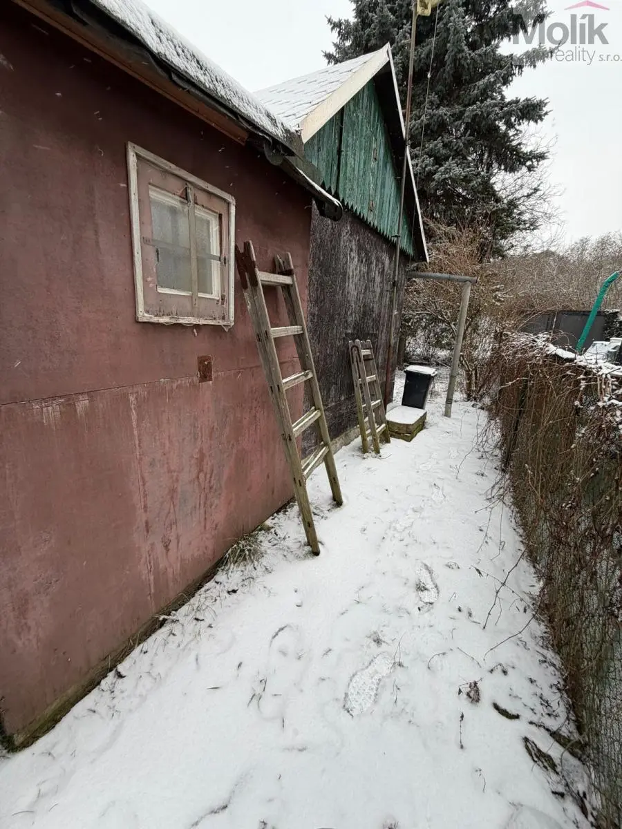 Za chatou je praktická kůlna na nářadí. Velkou výhodou je přímý přístup k říčce Srpině, odkud je možné čerpat vodu na zalévání zeleně.