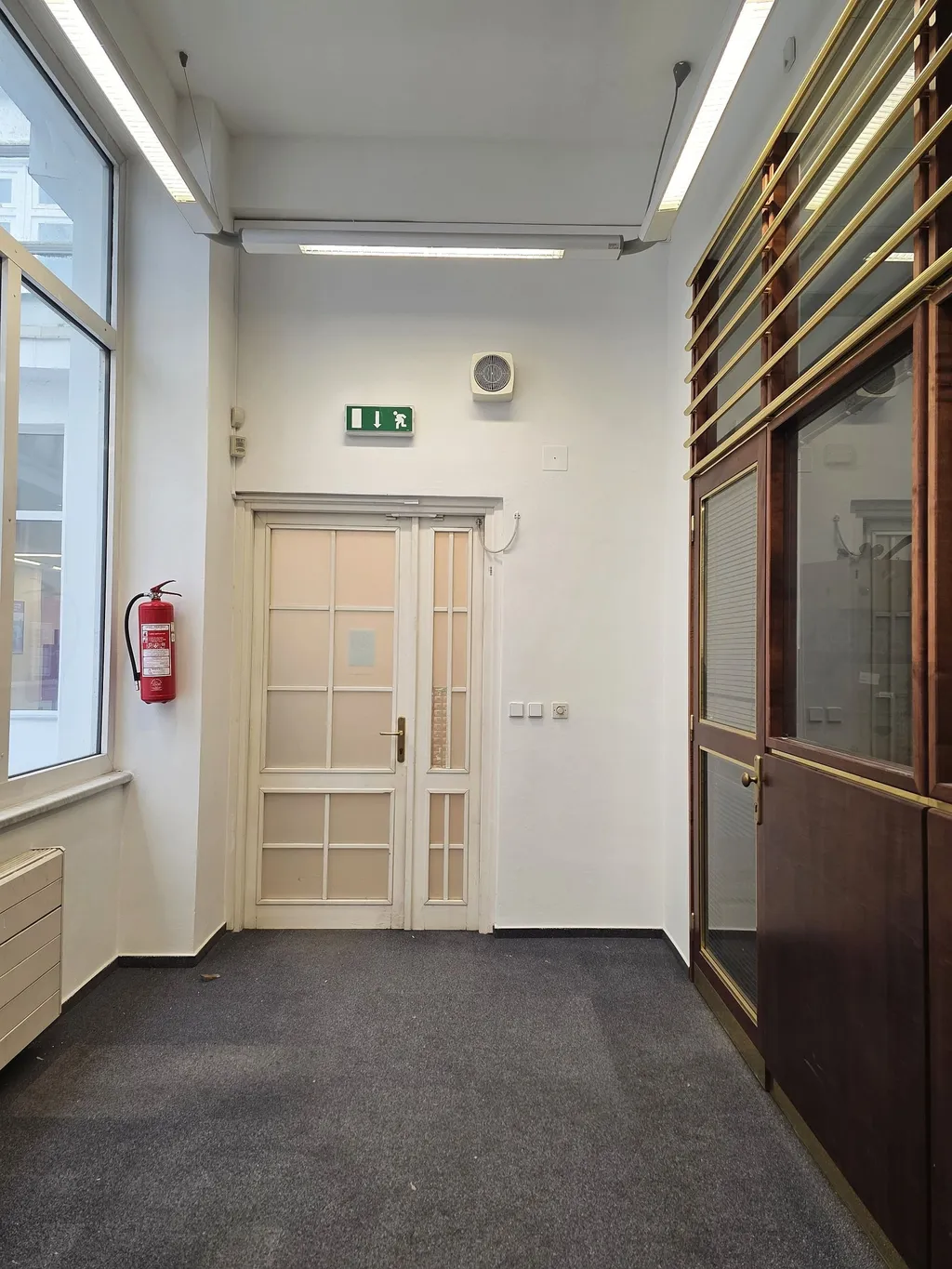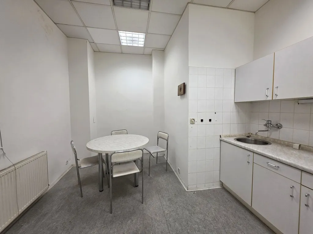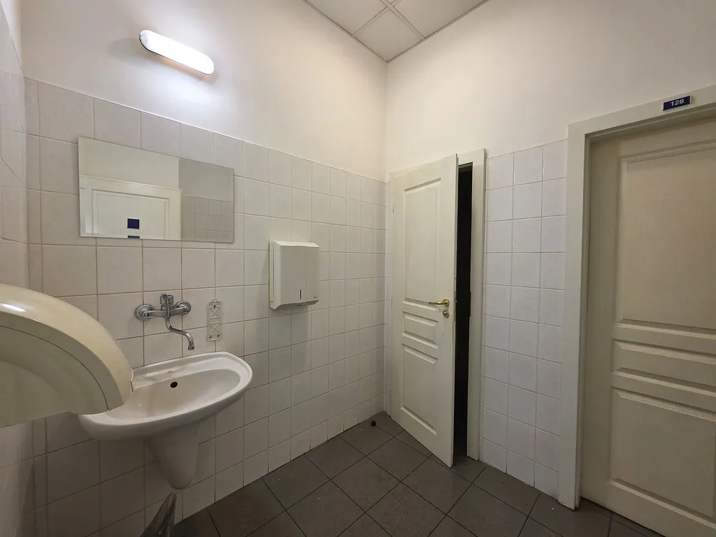 Nyní Vám nabízíme k pronájmu uzavřený soubor kanceláří v prvním patře č. 119 o celkové výměře cca 125,5 m2. Jedná se o velkoplošnou klimatizovanou kancelář o výměře cca 85 m2. Kancelář je vybavená vestavěnými skříněmi po celé jedné straně kanceláře, dále je částečně vybavená nábytkem, který může zůstat součástí a v ceně nájmu, nebo si nájemce zajistí vlastní. V rohu této velkoplošné kanceláře je vestavěná prosklená kancelář např. pro vedení společnosti o velikosti cca 13 m2. V uzavřeném bloku je vlastní sociální zařízení a denní místnost, resp. kuchyňka. Prostory jsou klimatizované.