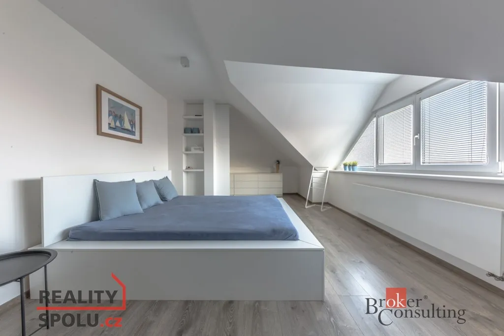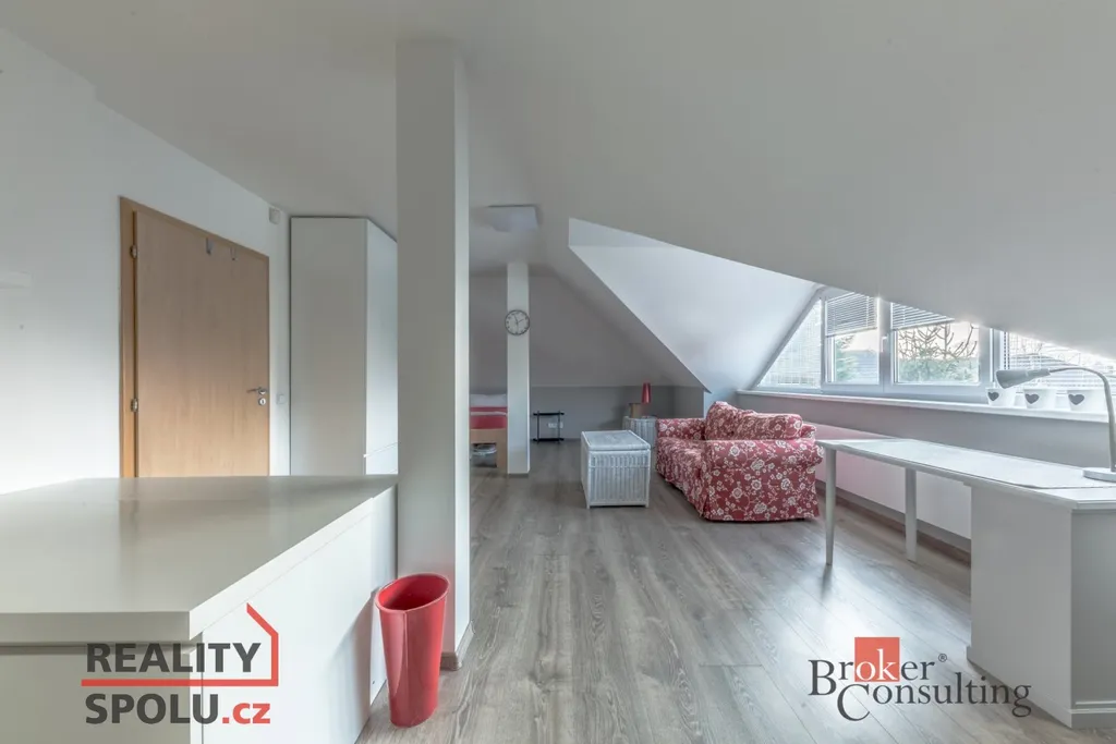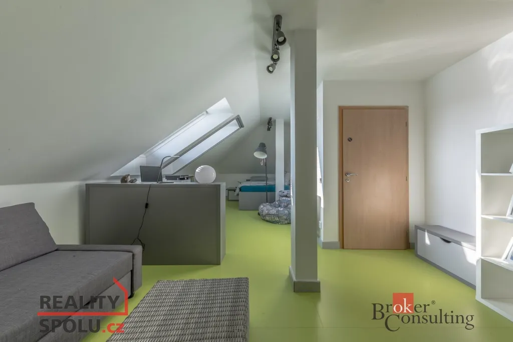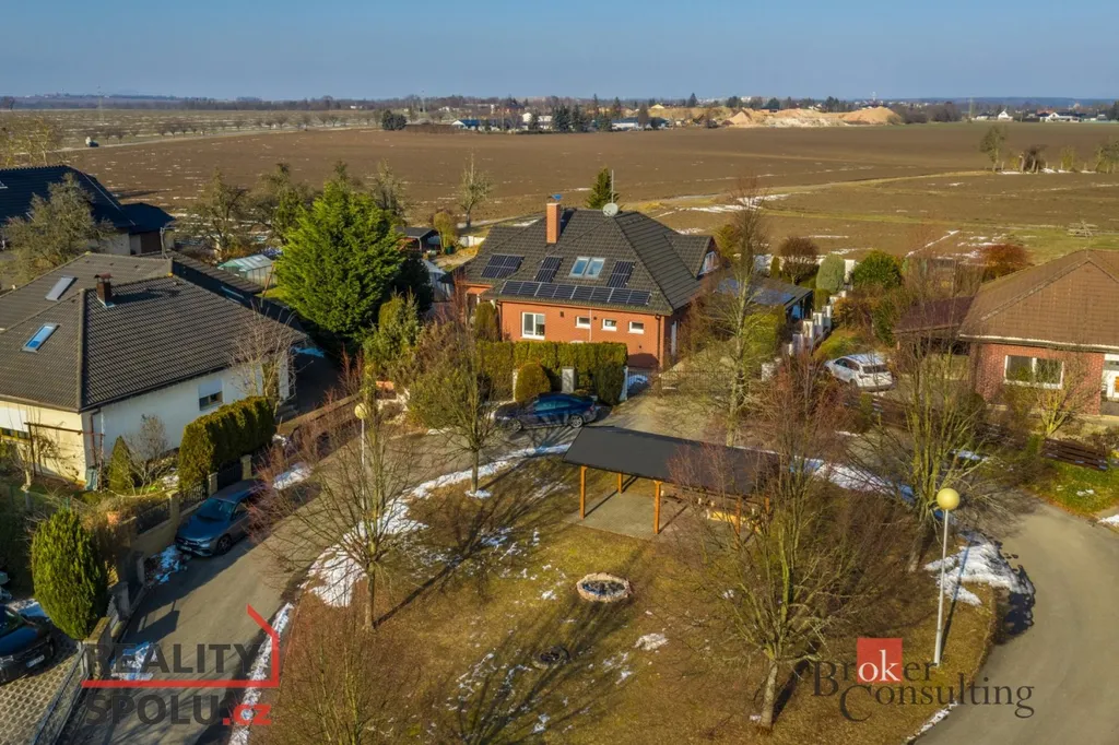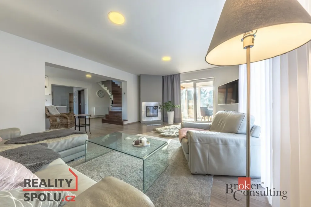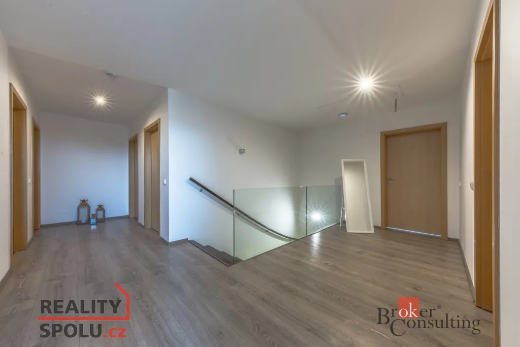 V přízemí se nachází vstupní hala, hlavní obytný prostor zahrnující moderní kuchyni, jídelnu a obývací pokoj s krbovou vložkou, pokoj pro hosty (či pracovnu), technickou místnost, šatnu, prádelnu, koupelnu a WC . V přízemí mohou noví majitelé využívat také útulnou zimní zahradu s kvalitní saunou. V podkroví se nacházejí tři ložnice, šatna, koupelna a WC. Parkování vozidel je zajištěno pod krytým parkovacím stáním a dalším místem pro stání za vraty. Dům je připojen na všechny inženýrské sítě (voda, kanalizace, elektřina, plyn) O efektivní vytápění se stará moderní tepelné čerpadlo v kombinací se solárními panely na střeše, což výrazně snižuje náklady na energie.