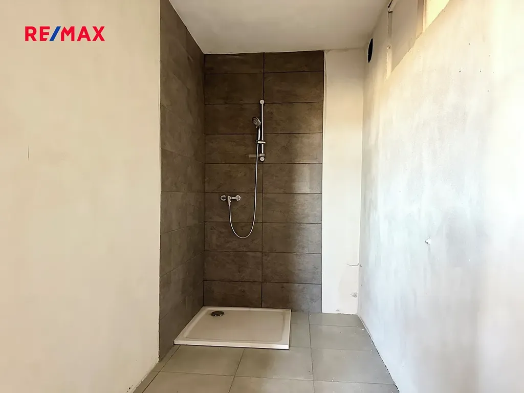 V prvním patře je připravený otevřený prostor s rozvody elektřiny a vody, vhodný pro dokončení podle představ nového majitele. Jsou zde dvě samostatné toalety a oddělená sprcha.