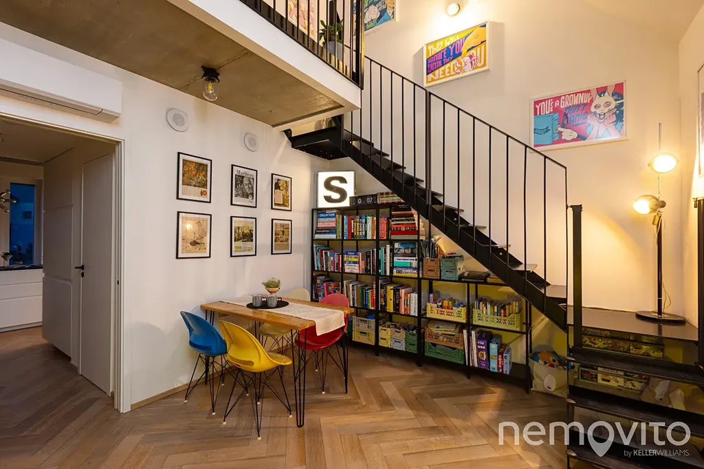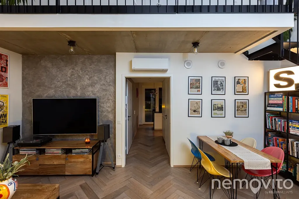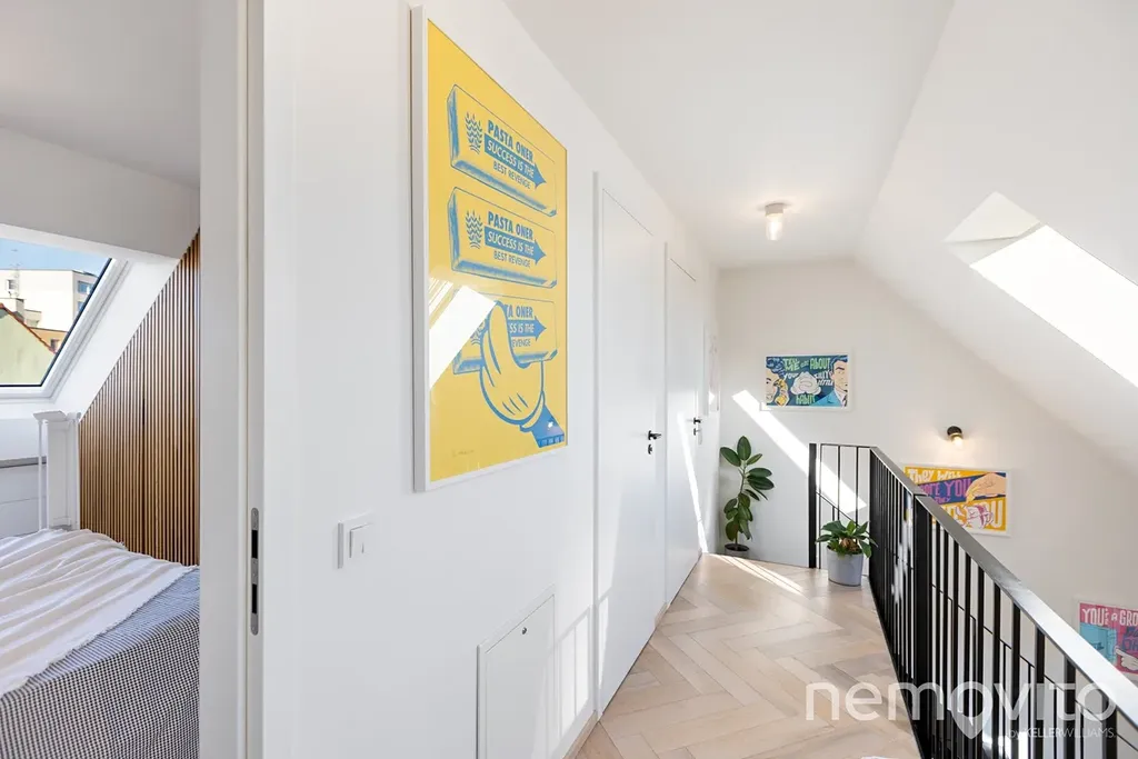 Špičkově provedený mezonetový byt z roku 2021, který je v nejvyšším podlaží domu o 6 bytech, který vyniká úsporným provozem. Tepelné čerpadlo s podlahovým topením, rekuperace, klimatizace, venkovní žaluzie. Dvoupodlažní jednotka byla proti původnímu návrhu kompletně přepracována a těšit se v ní můžete na dřevo, kov, beton a živý industriální vizuál. K bytu patří také bohaté příslušenství v podobě terasy, balkonu, sklepa a obrovské garáže.