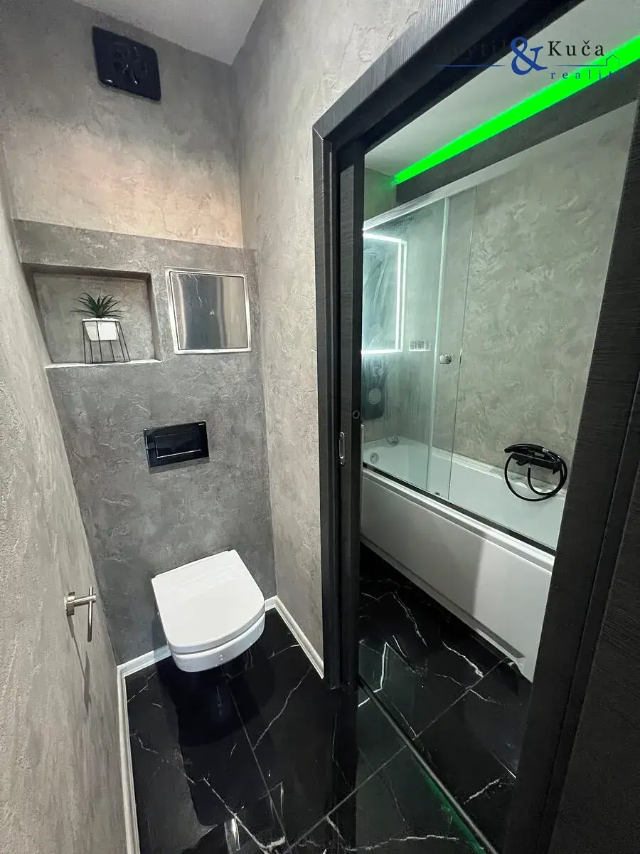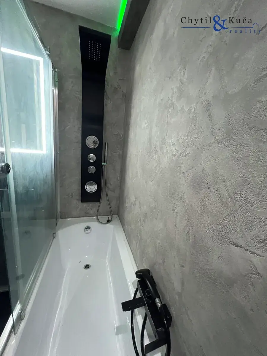 revitalizovaného domu s výtahem na ulici Fugnerova v Přerov. Byt prošel kompletní rekonstrukcí. Vstup do bytu ze společné chodby vede přes bezpečnostní dveře, kde se dále nachází prostorná vstupní chodba, která disponuje vestavnými skříněmi zhotovenými na míru s úložným prostorem. Z centrální chodby je dále vstup do obytného pokoje, dále pak do koupelny a rovněž na toaletu. Vstup z chodby je dále pak do obývacího pokoje, který je spojený s kuchyňským koutem. Ložnice se nachází za obývacím pokojem. Na podlaze v chodbě, toaletě a koupelně se nachází keramická dlažba. V obytných místnostech se nachází podlaha plovoucí a u kuchyňského koutu se nachází na podlaze linoleum. Studená a teplá voda je přivedena dálkově. Vytápění bytu je rovněž dálkové. Obývací pokoj s kuchyní lze chladit pomocí klimatizace. Pro více informací a pro případnou prohlídku daného bytu neváhejte kontaktovat makléře.