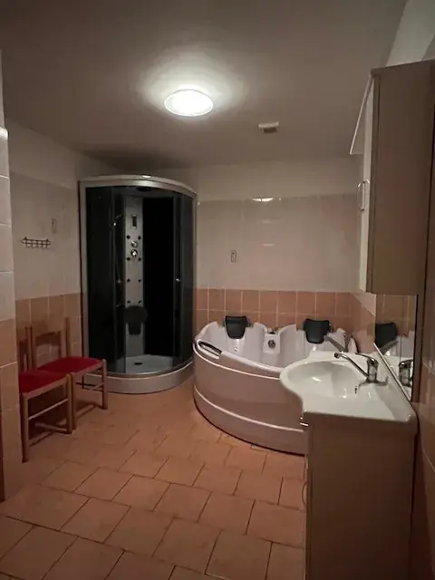 Hotel disponuje bazénem s barem, 7 apartmány s možností dobudování dalších pokojů, dvěma saunami a vinným sklepem s 500 ti láhvemi vína, koupelnami a toaletami.