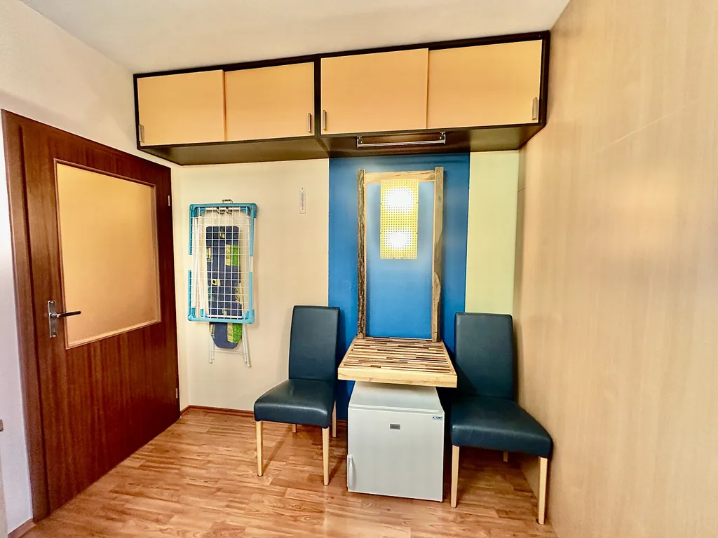 • Vybavení: Plně zařízený nábytek (postel, , stůl, skříně), pračka v bytě, internet připravený k připojení, topení plynové.