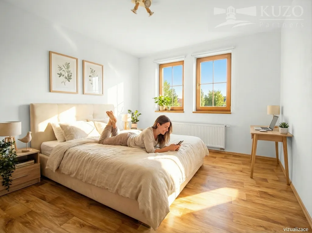 Nábytek, doplňky a osoby na fotografiích jsou vizualizovány, fotky nezobrazují aktuální vybavení, pouze reálnou dispozici a stav bytu.
