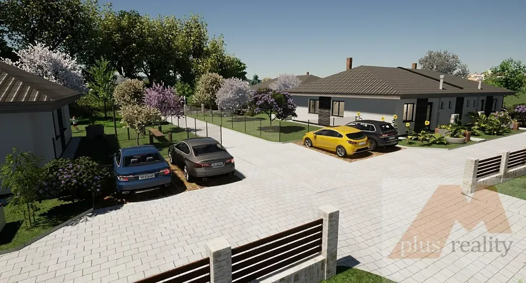 Parcela je umístěna v lokalitě, která byla projektována jako rezidenční bydlení, které zahrnuje 3 parcely na kterých jsou umístěny dva přízemní dvojdomky a jeden samostatný přízemní RD. Vjezd z hlavní silnice na parcely lze uzavřít branou a všechny parcely tak společně oddělit, čímž je docíleno uzavřené rezidenční lokality.