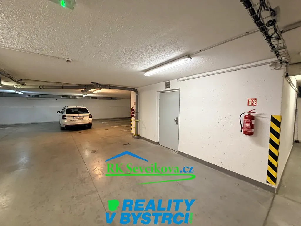 V prostoru garážových stání s vjezdem garážovými vraty na dálkové ovládání. Sklad má svoje vstupní uzamykatelné dveře a je v uzamykatelné místnosti spolu s dalšími sklady.