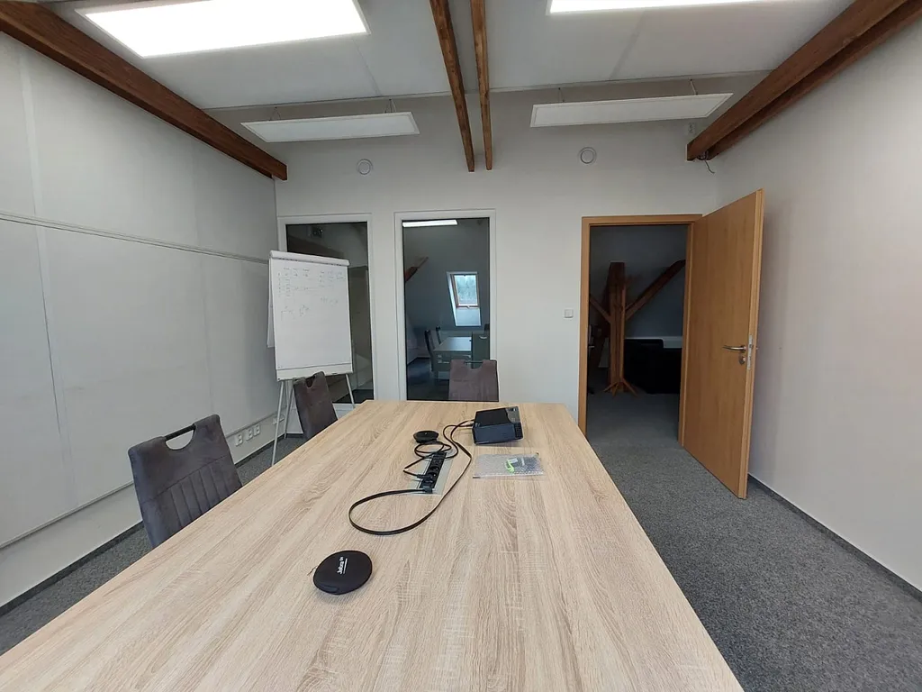 K nájemnému se hradí záloha na služby (elektřina, teplo, voda, úklid, výtah, odpady, kopírka, internet) ve výši 20.213 Kč/8 osob/měsíc+DPH.