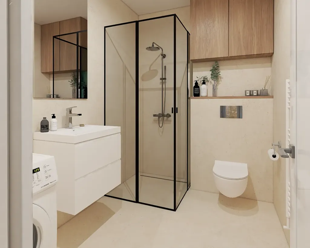 Byty jsou vybaveny kuchyňskou linkou s vestavnou varnou deskou, troubou a digestoří. Koupelna disponuje sprchovým koutem, umyvadlem se skříňkou, toaletou a přípojkou na pračku. Byty jsou vybaveny interiérovými obložkovými dveřmi a na podlaze je položen vinyl. Jednoduchost, elegance, vzdušnost. Tři slova, která skvěle vystihují interiér. Interiér je navržen tak, abyste se cítili dobře, pohodlně a bezpečně. Byty jsou dokončeny ve vysokém standardu. Vybrat si můžete ve dvou barevných odstínech a to hnědé a šedé. Použité materiály byly voleny zejména s ohledem na kvalitu, dlouhou životnost, úsporu energií a moderní design.