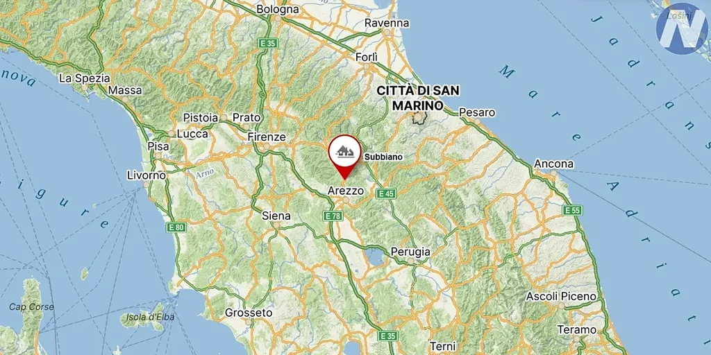 Tato nemovitost se nachází v obci Subbiano, na strategickém místě, které kombinuje klid absolutní samoty s výbornou dostupností po asfaltová cestě. Poloha na kopci nabízí nádherné výhledy na údolí Casentino, které patří k nejzelenějším a nejmalebnějším koutům Toskánska. Je to oblast proslulá svými uzeninami, zejména šunkou z Casentina. Za 15mi dojedete do historického města Arezzo, můžete navštívit nedaleký národní park Foreste Casentinesi, nebo majestátní hrad Poppi či klášter La Verna, kde působil svatý František.