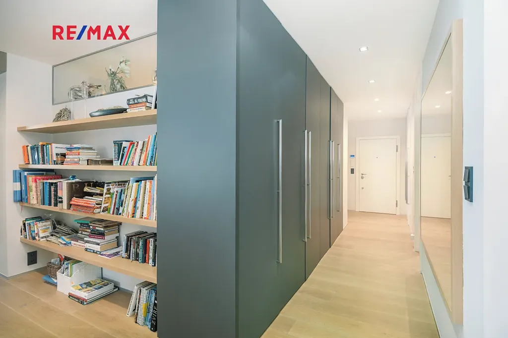 Velice prostorný byt, výborně dispozičně řešený, dominantou je vzdušný obývací pokoj s kompletně vybaveným kuchyňským koutem, který propojuje prostřednictvím předsíně a chodeb další pokoje, koupelny a technické zázemí bytu, viz přiložený půdorys. Za zmínku stojí oddělená pracovna, součást obývacího pokoje.