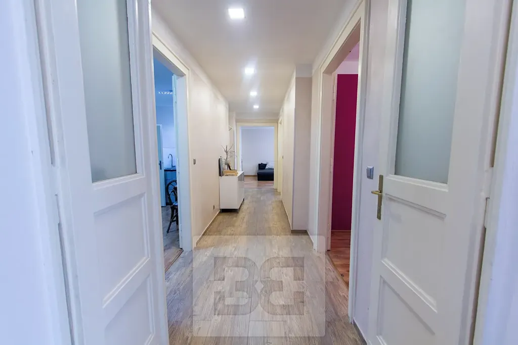 Exkluzivně nabízíme k dlouhodobému pronájmu prostorný, vybavený byt 4+kk o celkové rozloze 107 m2 v cihlovém domě v ulici Bělehradská u Tylova náměstí. Byt otevírá velká předsíň, vhodná pro umístění kola nebo kočárku, na kterou navazuje centrální chodba, ze které se vstupuje do samotných pokojů. Jeden pokoj má samostatný kuchyňský kout díky tomu je byt ideální ke spolubydlení. Naproti je menší pokoj o rozloze cca 12 m2. Následuje větší pokoj s velkou dvojpostelí a skříní. Prostorný obývací pokoj s kompletně vybavenou kuchyní (lednička s mrazákem, myčka, trouba, sklokeramická varná deska, digestoř). Byt dále disponuje samostatnou toaletou a koupelnou s vanou a WC. Okna bytu jsou orientována do klidného vnitrobloku.