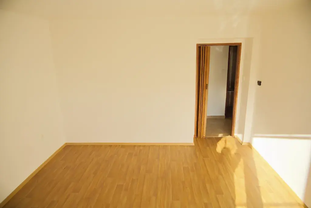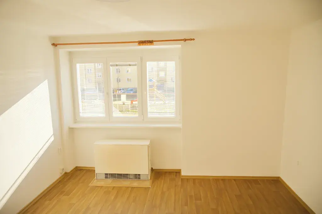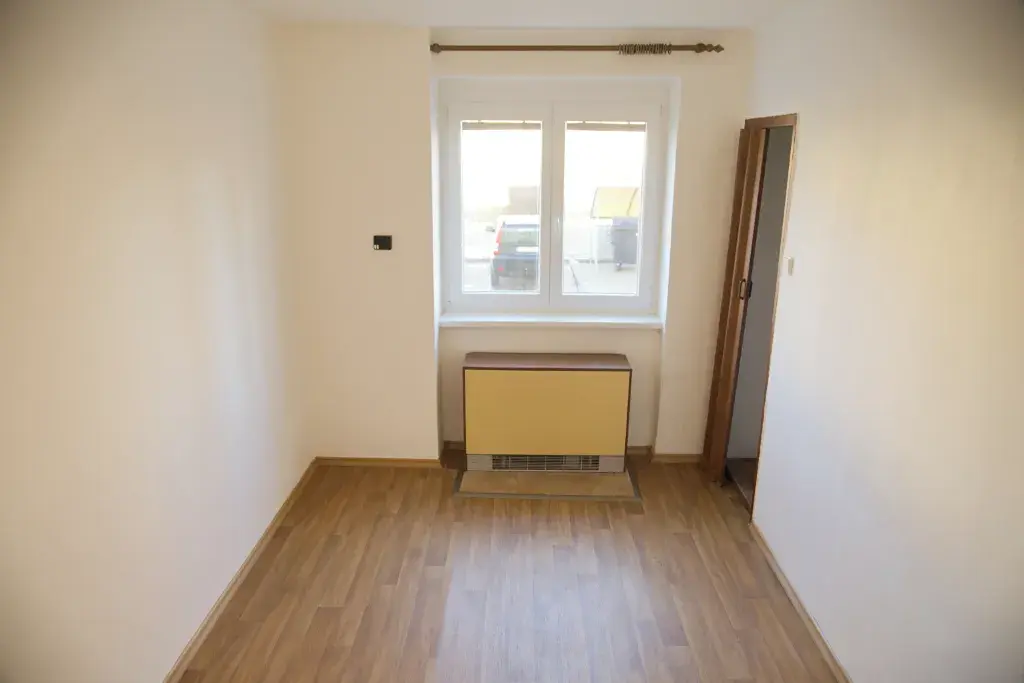 Dispozice je: 1. pokoj (15,5 m2), 2. pokoj (9,78 m2), kuchyně (3,9 m2), koupelna (3,1 m2), WC (0,6 M2), chodba (4,8 m2), špajz (0,6 m2). K bytu náleží sklep.
