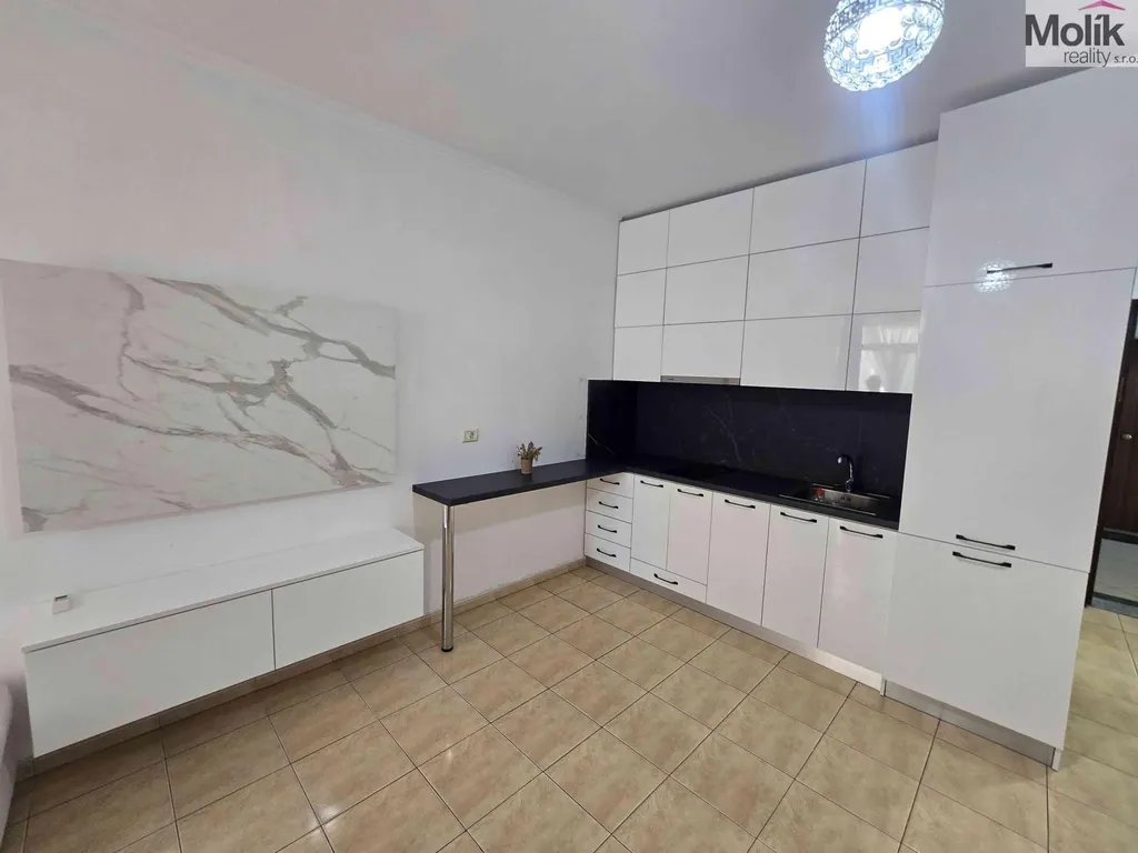 Dispozice zahrnuje obývací pokoj s kuchyňským koutem, samostatnou ložnici, koupelnu s toaletou a vstupní chodbu. Interiér je zařízen v moderním, světlém stylu, s důrazem na funkčnost a komfort. Světlá kuchyňská linka a obývací část nabízí dostatek prostoru pro relaxaci i pobyt s rodinou. Samozřejmostí je klimatizace.