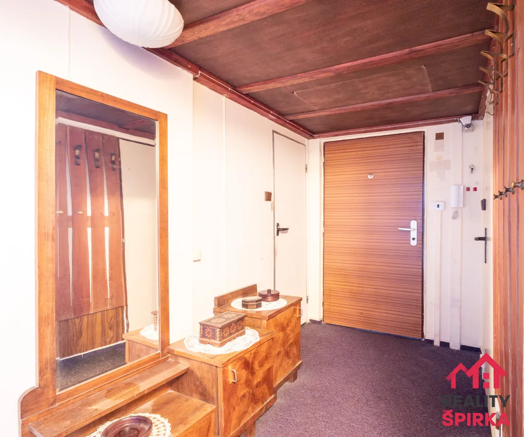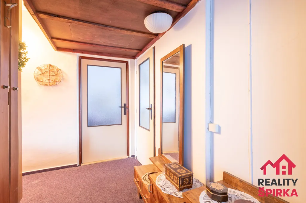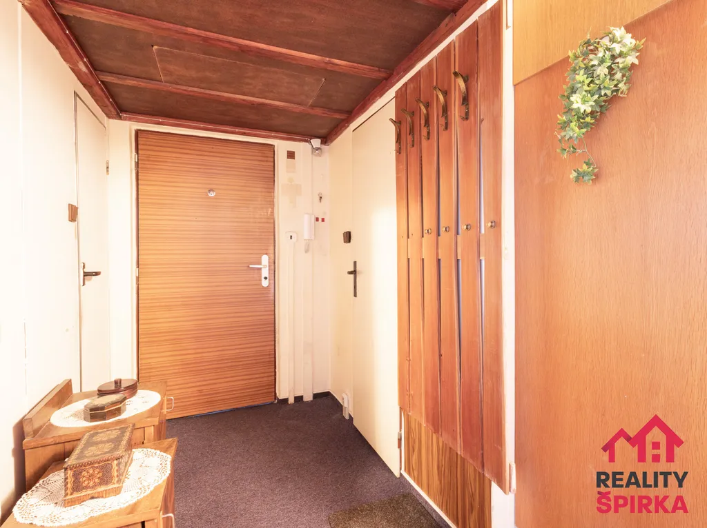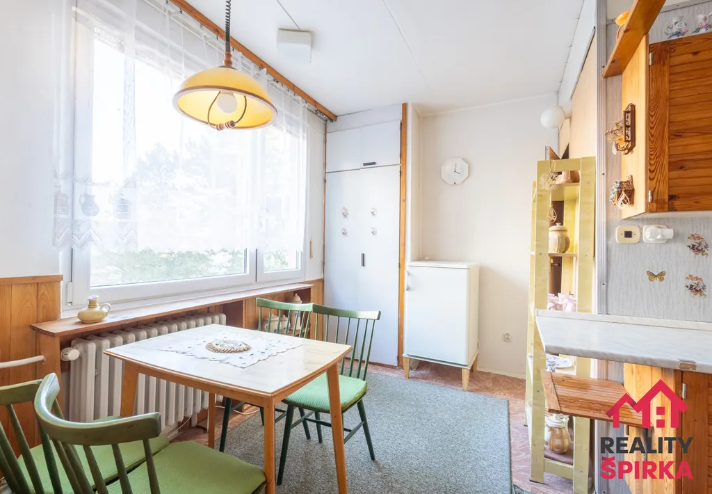 Dispozice bytu: chodba, koupelna, WC, komora, kuchyň s jídelnou, obývák a ložnice. Jádro umakart. Vytápění bytu a ohřev vody je řešeno dálkově. Okna plastová. K bytu náleží sklep a společné prostory.