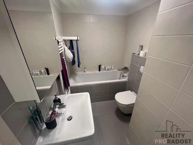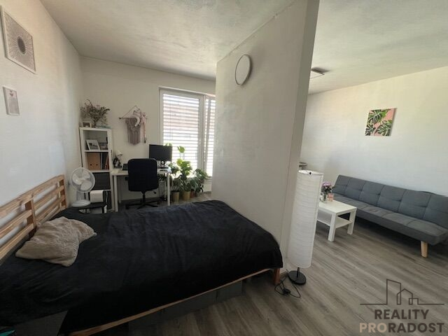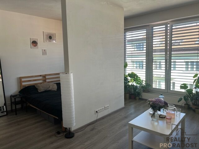 Nabízíme k dlouhodobému pronájmu byt o velikosti 40 m2, umístěný v 7.NP/11.NP s výtahem. Byt je vybavený a připravený k nastěhování dle dohody. Jedná se o moderní, nový byt, který se skládá s předsíně, koupelny s WC a vanou a centrální místností s plně vybavenou kuchyňskou linkou (lednice, myčka, trouba, indukční deska), která je opticky oddělena stěnou pro umístění lůžka. V bytě zůstává vestavěná šatní skříň a částečně vybavení nábytku. Zastínění oken je řešeno venkovními elektrickými žaluziemi. K bytu náleží sklep.