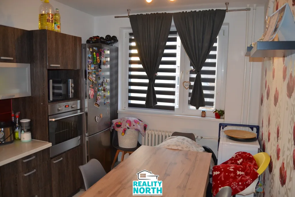 V zastoupení nabízíme pronájem družstevního bytu o dispozici 3+1 po rekonstrukci. Byt se nachází na okraji sídliště Dobětice v krajském městě Ústí nad Labem v řadovém panelovém domu. Dům je po celkové revitalizaci, zateplený, s novými rozvody plynu, vody, novým výtahem a vybavený kamerovým systémem. Byt je v 1.NP 8.podlažního panelového domu a je též po rekonstrukci. V bytě jsou 3 samostatné pokoje, okna bytu jsou situována na JV -obývací pokoj + kuchyně a na protilehlou stranu SZ - ložnice a dětský pokoj. Kuchyně je po rekonstrukci včetně vestavné myčky a el. trouby, s plynovými sporáky. Koupelna je zvětšená o chodbu ke kuchyni s rohovou vanou a velkým umyvadlem a je společná s WC. Z obýváku je vchod do kuchyně a na lodžii.