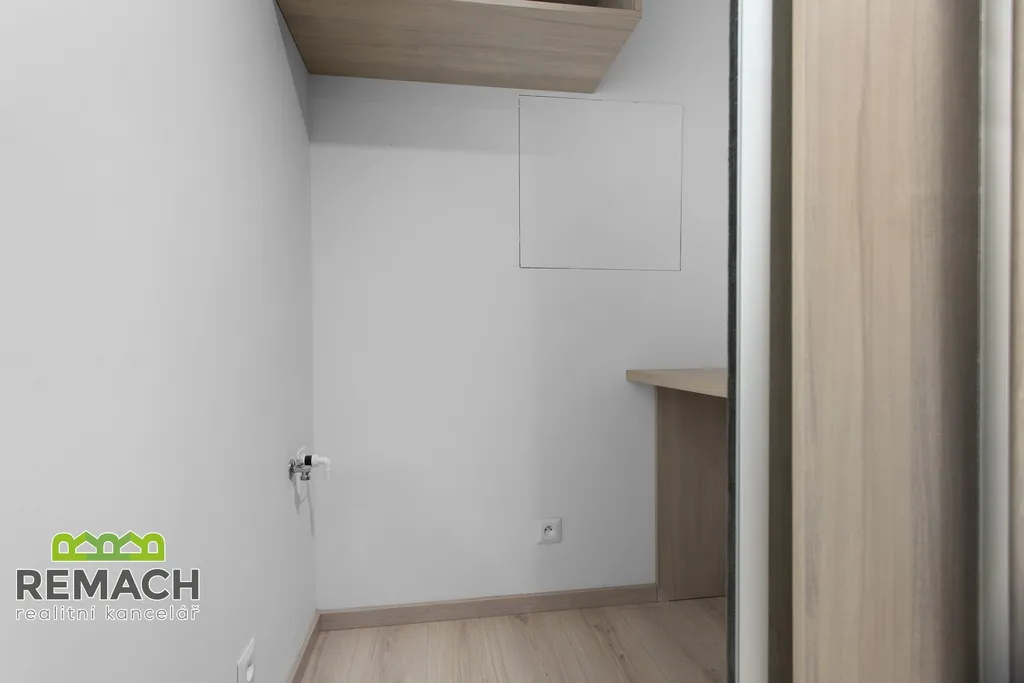 Moderní pojetí bytu dovytváří venkovní elektrické žaluzie, automatické větrání s rekuperací tepla, podlahové vytápění, tepelné čerpadlo, velkoprostorová okna s izolačními trojskly se vstupem na velký balkon.
