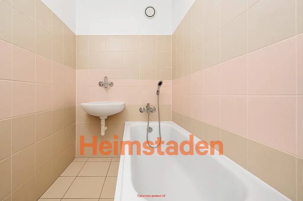 Koupelna je samostatná a nabízí vanu, ideální jak pro rychlou sprchu, tak pro relax po náročném dni.