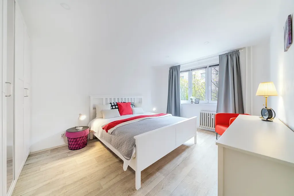 Byt je plně vybavený, světlý, dobře dispozičně řešený a vhodný i pro spolubydlení, protože kuchyň odděluje obývací pokoj a ložnici.