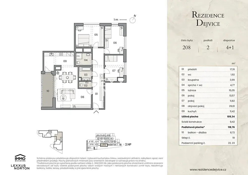 Nabízíme k prodeji výjimečný byt 4+1 ve druhém nadzemním podlaží luxusního projektu Rezidence Dejvice. Tento nadstandardní rodinný byt zaujme velkorysou podlahovou plochou 118,76 m² a dokonalým propojením interiéru s exteriérem – k bytu náleží prostorný balkon, což umožňuje naplno využít kouzlo bydlení v zeleni i naprostém soukromí.