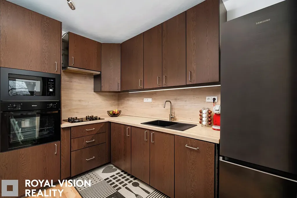 Dispozičně je byt řešen velmi prakticky. Dominantou bytu je prostorný obývací pokoj o výměře 18,11 m², který nabízí dostatek místa jak pro odpočinkovou část, tak pro jídelní kout. Další dva pokoje o velikosti 12,92 m² a 10,85 m² lze využít jako ložnici, dětský pokoj či pracovnu. Kuchyně o velikosti 7,2 m² je samostatná a prošla rekonstrukcí v roce 2022. Je vybavena moderní kuchyňskou linkou s plynovým sporákem, elektrickou troubou, mikrovlnnou troubou, digestoří a myčkou nádobí.
