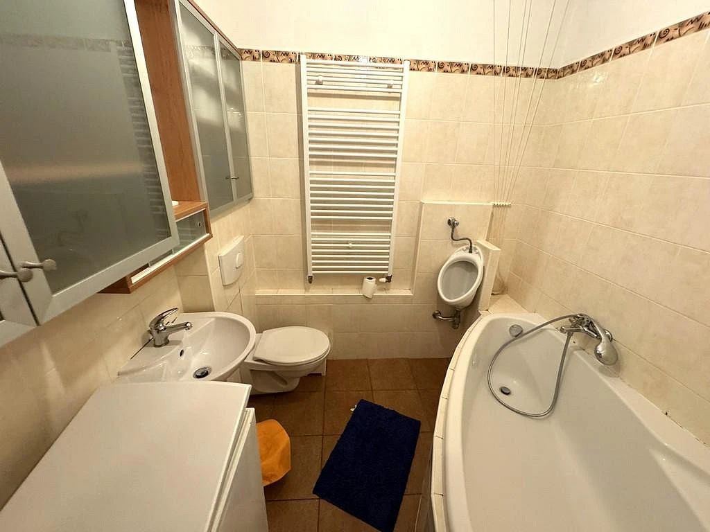 Bytová jednotka se nachází v klidné části Brno Žebětín. Po vstupu vchodovými dveřmi, se ocitneme v útulné předsíni jejíž dominantou je dostatek úložných prostor. Její celková výměra je cca 6,30 m². Z této chodby je volný vstup do koupelny o celkové ploše cca 3,90 m². Koupelna jako taková, je vybavena rohovou vanou, umyvadlem, otopným žebříkem a vlastní pračkou s vrchním plněním a stejně jako chodba, i koupelna má dostatek úložných prostor.