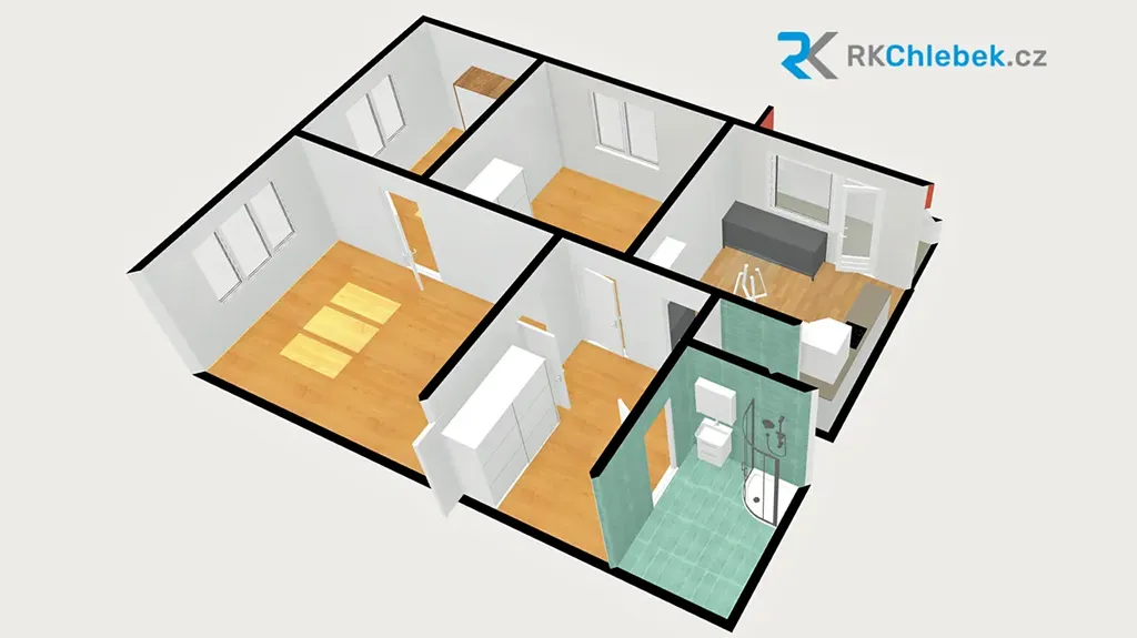 • Zálohy na služby: 3.500 Kč / měsíc (pro 3 osoby)