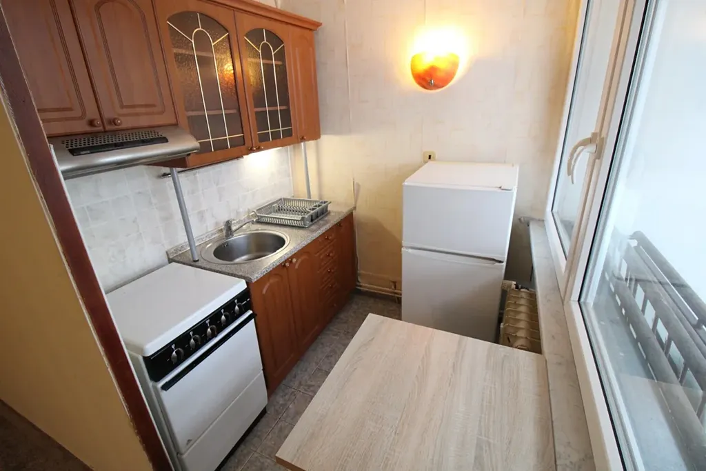 Byt je prakticky dispozičně řešen a nabízí dostatek prostoru pro pohodlné bydlení jednotlivce či páru. Součástí vybavení je kuchyňská linka se sporákem a lednicí, k dispozici je rovněž pračka. Velkou výhodou je prostorná lodžie, která poskytuje příjemné místo k relaxaci nebo posezení.
