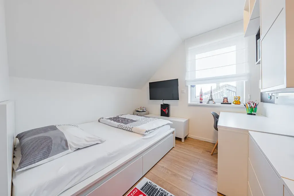 Dům se prodává včetně vybavení vyrobeného na míru, zejména kuchyňské linky, vestavěných skříní a dalšího zařízení.