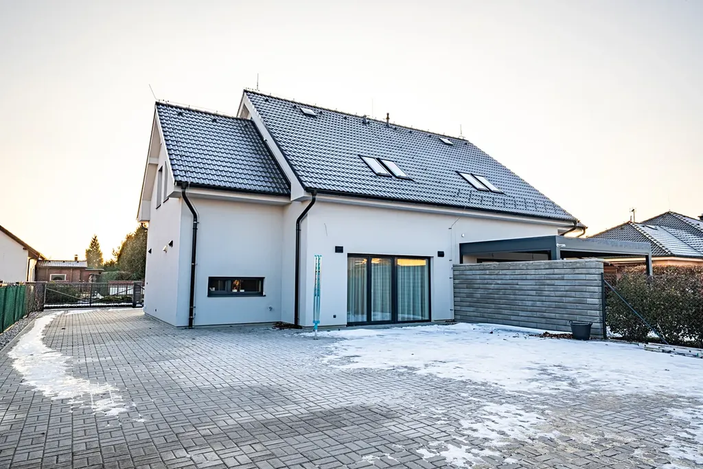 Nabízíme k prodeji velmi úspornou moderní novostavbu patrového zděného rodinného domu – polovinu dvojdomu s vlastním číslem popisným, o dispozici 5+1, nacházející se v klidné a žádané lokalitě města Nové Strašecí, ulice Myslivečkova.