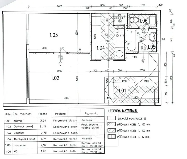 Byt o celkové ploše 45 m² prošel v posledních letech kompletní rekonstrukcí s důrazem na praktické řešení a dostatek úložných prostor. Dispozice bytu nabízí vstupní předsíň s vestavěnými skříněmi, koupelnu s vanou, samostatné WC s pračkou a světlý obývací pokoj s kuchyňským koutem. Kuchyň je vybavena myčkou na nádobí (60cm), pečicí a mikrovlnnou troubou a lednicí. Z obývací části je vstup do ložnice.