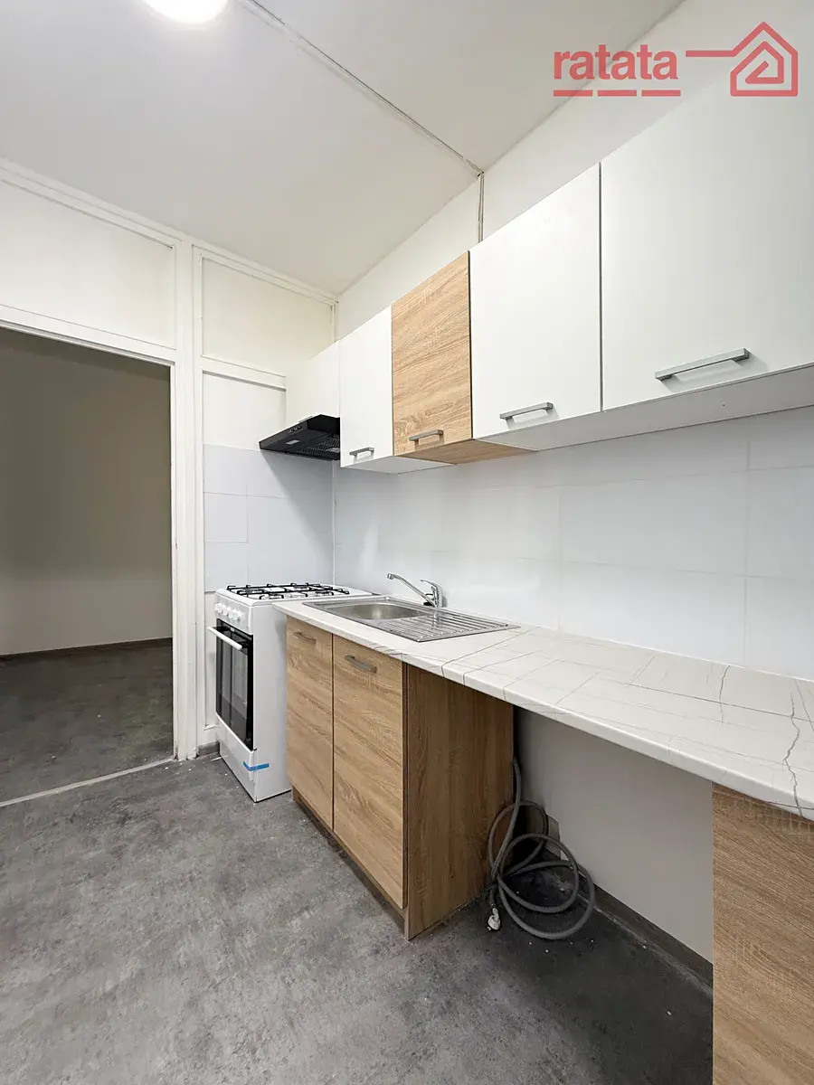Je to čistý a slunný byt. Je zde kuchyňská linka, plynový sporák, vana, umyvadlo a WC. Na podlahách je položeno lino. Byt je volný k nastěhování IHNED.