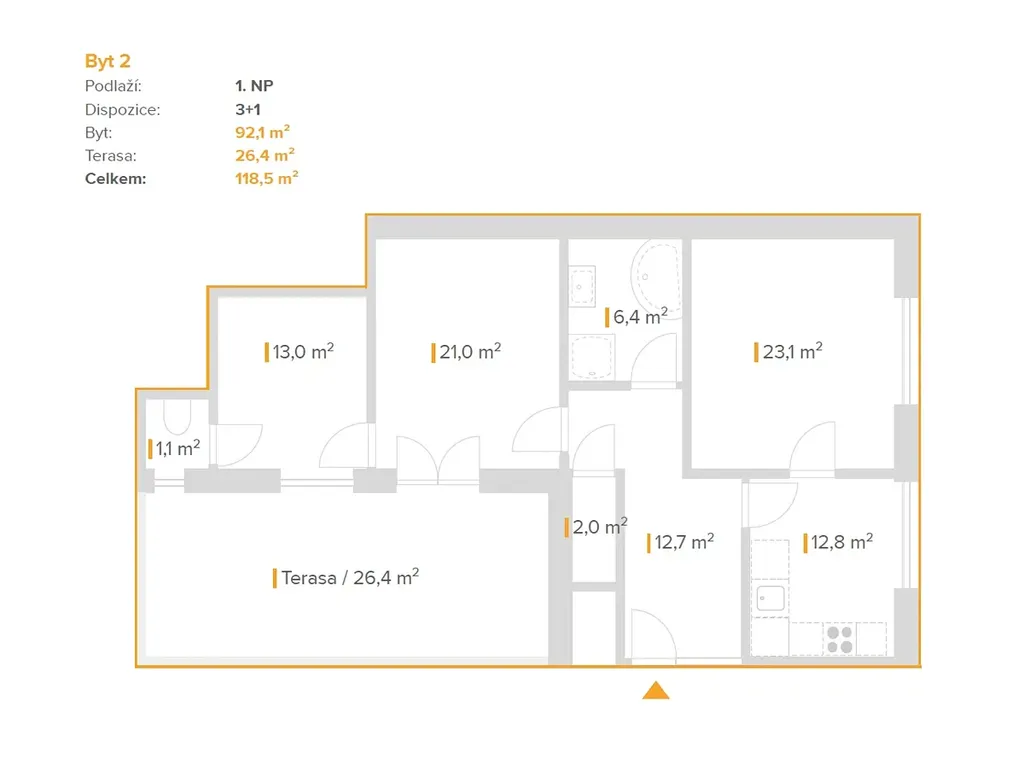 / Byt 2 (1. NP): 3+1 s terasou (90 m²)
